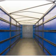 - Laterais em lona vinílica reforçada, sustentada por rodízios;